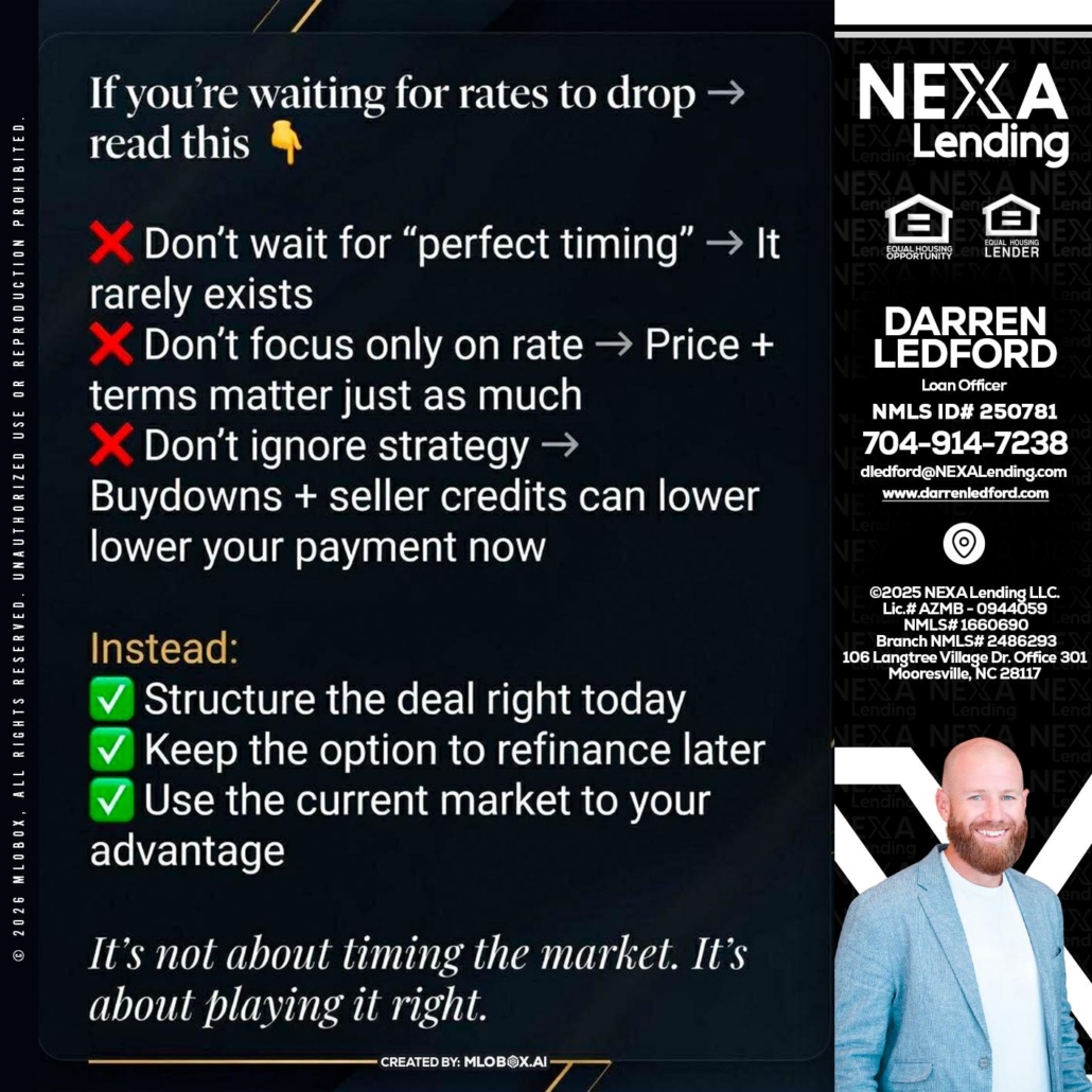 Hi, my name is Darren Ledford. I’m a Loan Officer with NEXA Lending LLC., offering personalized mortgage solutions, fast customized quotes, great rates and service with integrity.