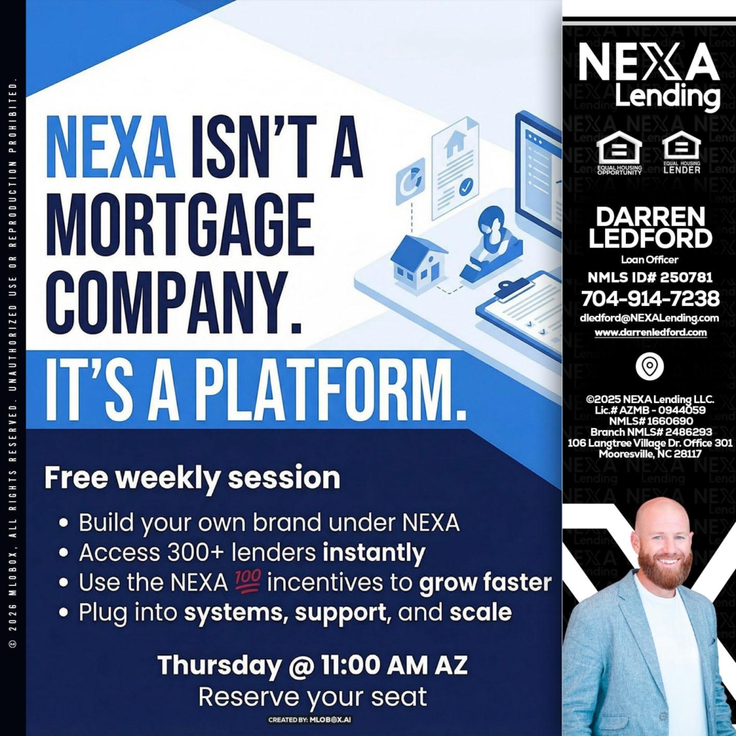 Hi, my name is Darren Ledford. I’m a Loan Officer with NEXA Lending LLC., offering personalized mortgage solutions, fast customized quotes, great rates and service with integrity.