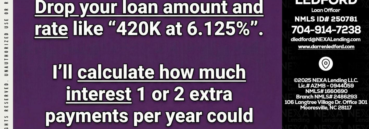 ONE EXTRA - Darren Ledford -Loan OfficerHi, my name is Darren Ledford. I’m a Loan Officer with NEXA Lending LLC., offering personalized mortgage solutions, fast customized quotes, great rates and service with integrity.