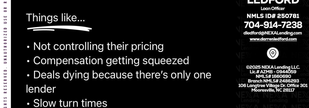 Hi, my name is Darren Ledford. I’m a Loan Officer with NEXA Lending LLC., offering personalized mortgage solutions, fast customized quotes, great rates and service with integrity.